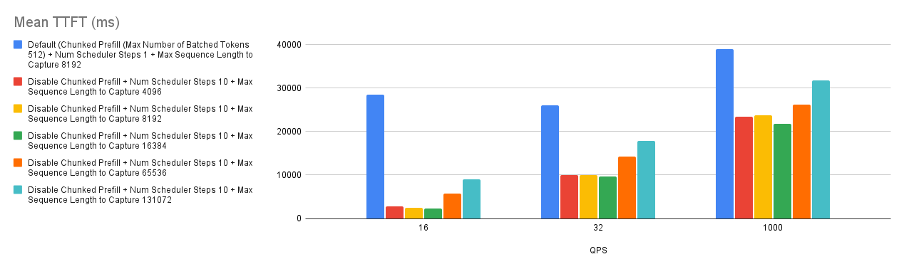 --num-scheduler-stepsto a value between 10 and 15 to optimize GPU utilization and performance. - Prefix Caching: Combining prefix caching with chunked prefill can enhance performance in specific scenarios. However, if user requests have a low prefix caching hit rate, it might be advisable to disable both chunked prefill and prefix caching.